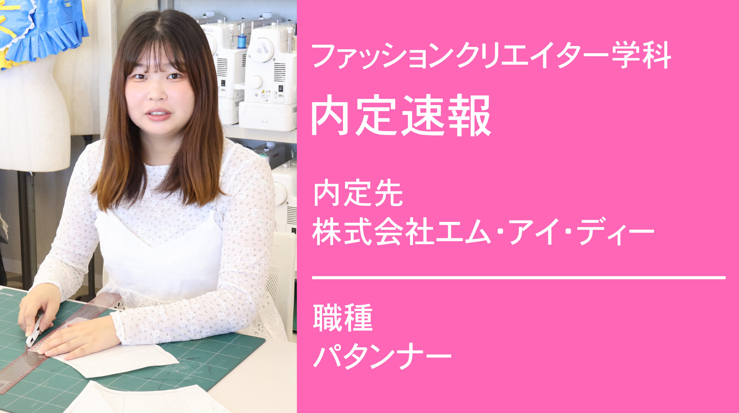 2025.01.01 株式会社エム・アイ・ディーに内定 -パタンナー- コメント専門的な授業の中でパターンという自分の好きな分野をもっと伸ばしたいと思い、検定授業を特に頑張って取り組みました。就職活動では、会社を深くリサーチして会社への理解を深めました。希望のパタンナーの仕事に就けたので知識をもっと身に付け、活躍できるようになりたいです。 内定先株式会社エム・アイ・ディー 一覧へ カテゴリー Webクリエイター オープンキャンパス コラム トピックス ファッションクリエイター ファッションクリエイター・ファッションビジネス ファッションビジネス メディアギャラリー 内定速報 内定速報 最近の投稿 ファッションビジネス学科によるポップアッ... スペシャルオープンキャンパス「一粒萬倍見... 「110番の日」1日通信指令課長に任命! 2026年3月卒業予定者内定速報 再進学をお考えの既卒・大学生・社会人の方... アーカイブ 2026年1月 (5) 2025年12月 (4) 2025年11月 (2) 2025年10月 (3) 2025年9月 (1) 2025年8月 (1) 2025年7月 (1) 2025年6月 (1) 2025年5月 (1) 2025年4月 (1) 2025年3月 (2) 2025年2月 (4) 2025年1月 (13) 2024年12月 (4) 2024年11月 (5) 2024年10月 (10) 2024年9月 (4) 2024年8月 (6) 2024年7月 (9) 2024年6月 (6) 2024年5月 (6) 2024年4月 (9) 2024年3月 (12) 2024年2月 (7) 2024年1月 (6) 2023年12月 (1) 2023年11月 (3) 2023年10月 (6) 2023年9月 (5) 2023年8月 (10) 2023年7月 (6) 2023年6月 (6) 2023年5月 (2) 2023年3月 (6) 2023年2月 (6) 2023年1月 (1) 2022年12月 (1) 2022年10月 (1) 2022年7月 (5) 2022年6月 (3) 2022年5月 (3) 2022年4月 (4) 2022年3月 (4) 2022年2月 (8) 2022年1月 (9) 2021年12月 (5) 2021年11月 (9)