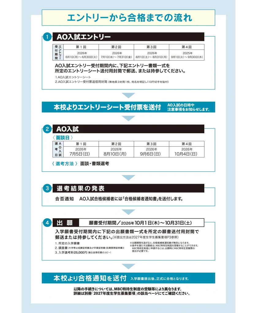 2026.04.28 AO入試エントリー受付開始! AO入試とは、教科や科目の筆記試験では測れない意欲や能力、目的意識などを書類選考・面談にて総合的に評価し、「本校が求める学生像(アドミッションポリシー)に合うか」で合否を判定する入学方式です。 松山デザイナー専門学校で、ファッション・Webを学びたい!そんなみなさんが”入学する権利”をいち早く手にできる「AO入試制度」。希望の学科・コースへの定員枠を得るために、毎年多くの受験生が利用している入学制度です。 一覧へ カテゴリー Webクリエイター オープンキャンパス コラム トピックス ファッションクリエイター ファッションクリエイター・ファッションビジネス ファッションビジネス メディアギャラリー 内定速報 内定速報 最近の投稿 初夏のオープンキャンパス情報 AO入試エントリー受付開始! AO入試説明会 開催中! 放課後プチオープンキャンパス開催! 2026年3月卒業予定者内定速報 アーカイブ 2026年4月 (7) 2026年2月 (4) 2026年1月 (3) 2025年12月 (3) 2025年11月 (2) 2025年10月 (3) 2025年9月 (1) 2025年8月 (1) 2025年7月 (1) 2025年6月 (1) 2025年5月 (1) 2025年4月 (1) 2025年3月 (2) 2025年2月 (4) 2025年1月 (16) 2024年12月 (4) 2024年11月 (5) 2024年10月 (9) 2024年9月 (4) 2024年8月 (6) 2024年7月 (9) 2024年6月 (6) 2024年5月 (6) 2024年4月 (9) 2024年3月 (12) 2024年2月 (7) 2024年1月 (6) 2023年12月 (1) 2023年11月 (3) 2023年10月 (6) 2023年9月 (5) 2023年8月 (10) 2023年7月 (6) 2023年6月 (6) 2023年5月 (2) 2023年3月 (6) 2023年2月 (6) 2023年1月 (1) 2022年12月 (1) 2022年10月 (1) 2022年7月 (5) 2022年6月 (3) 2022年5月 (3) 2022年4月 (4) 2022年3月 (4) 2022年2月 (8) 2022年1月 (9) 2021年12月 (5) 2021年11月 (9)