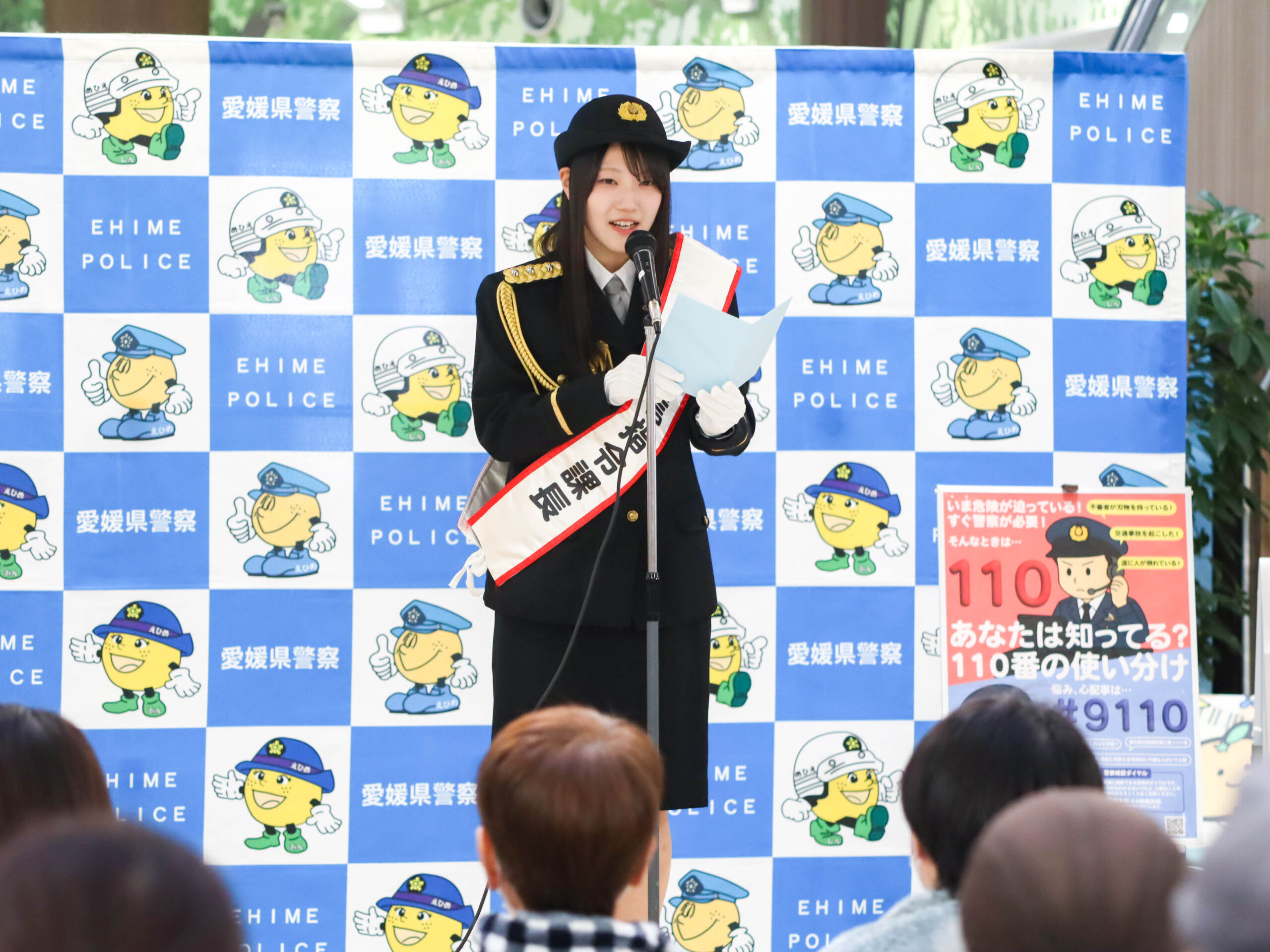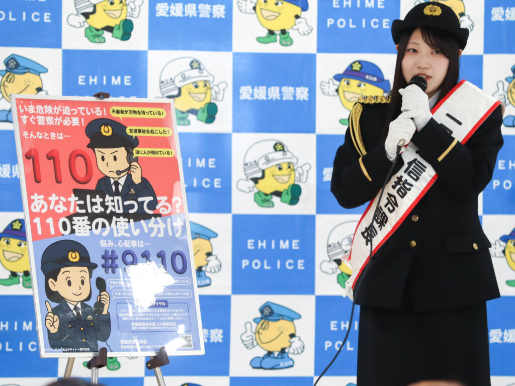 赤の110番は「いま」危機が迫っている場合、青の♯9110は悩みや心配事を伝えたい場合の連絡先として使い分けるよう分かりやすく説明してくれました。